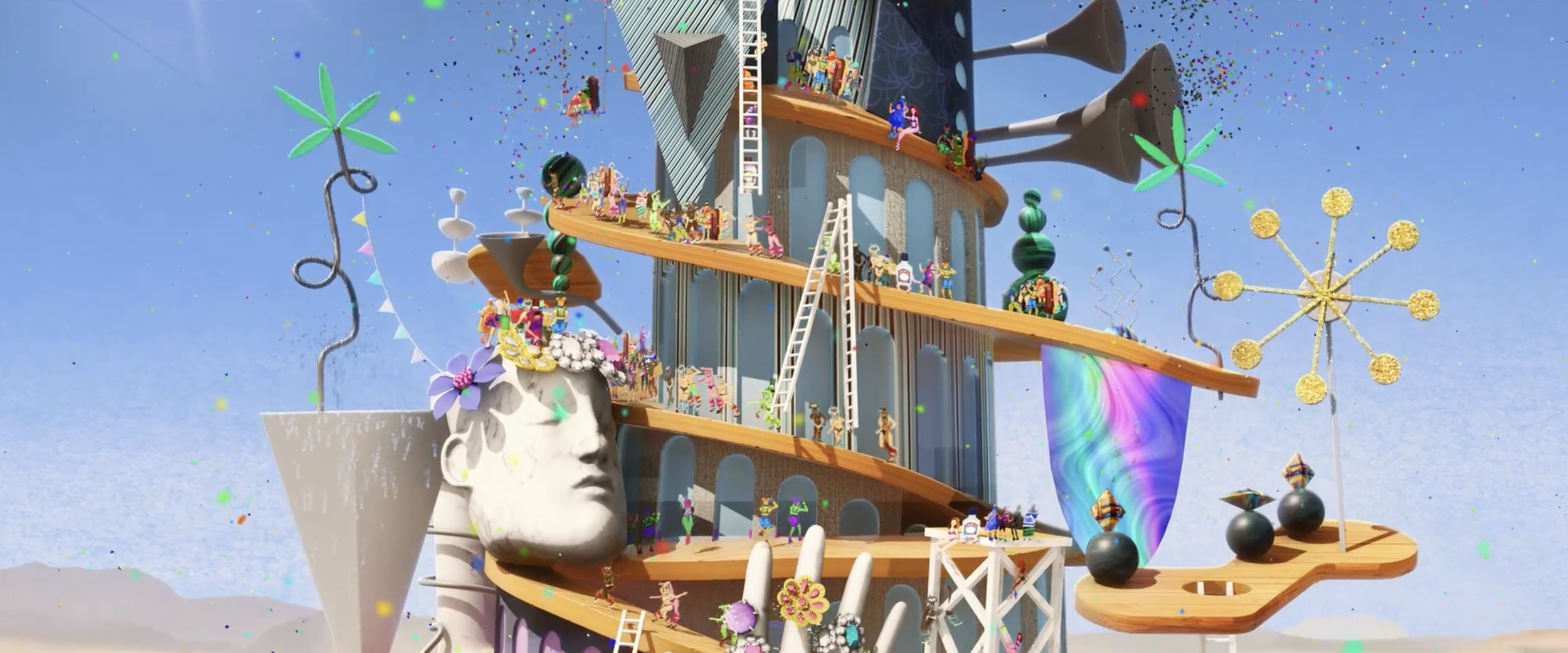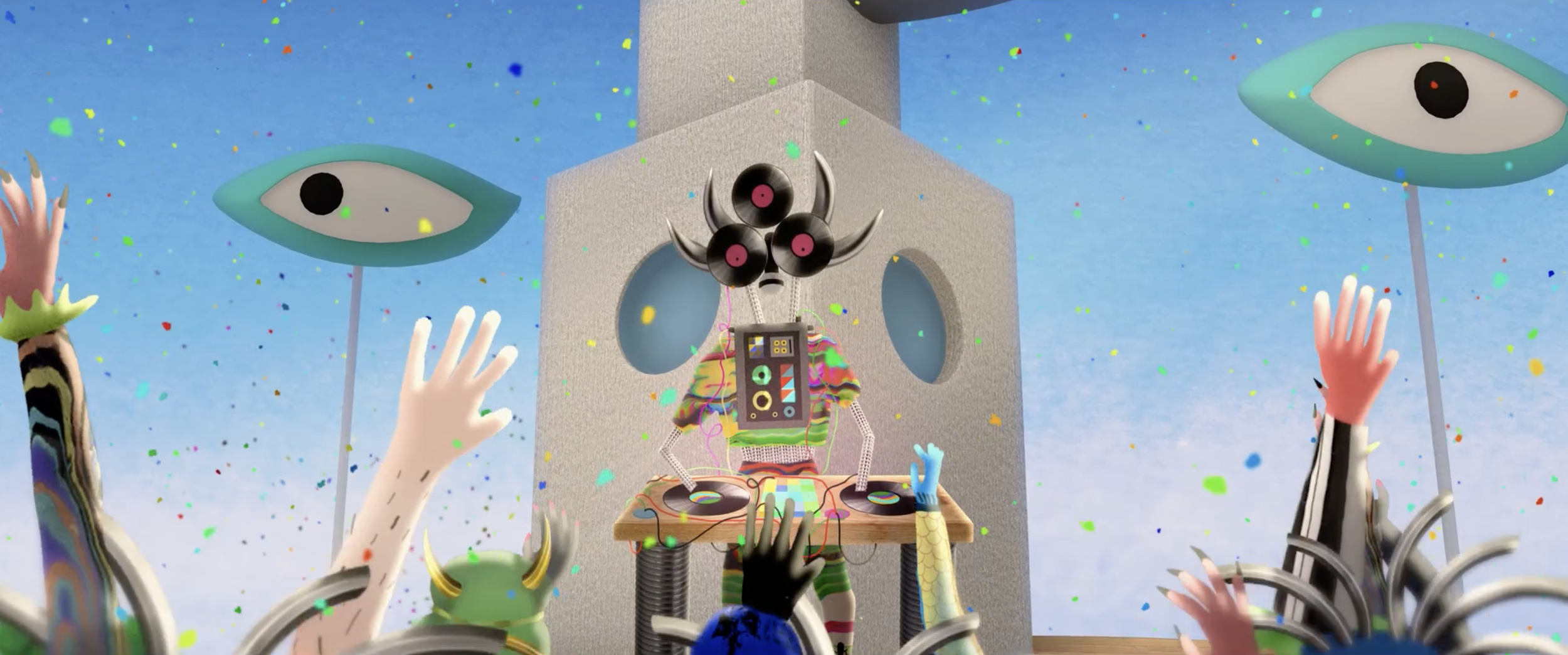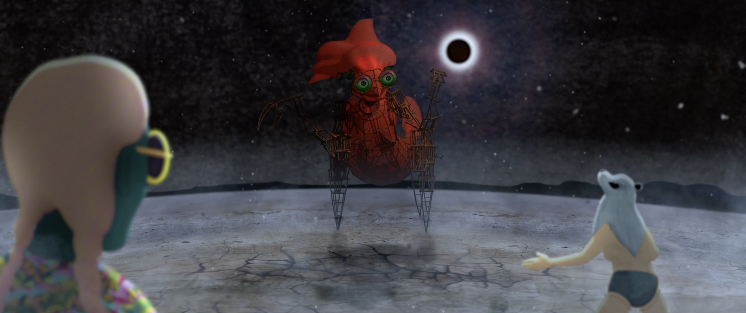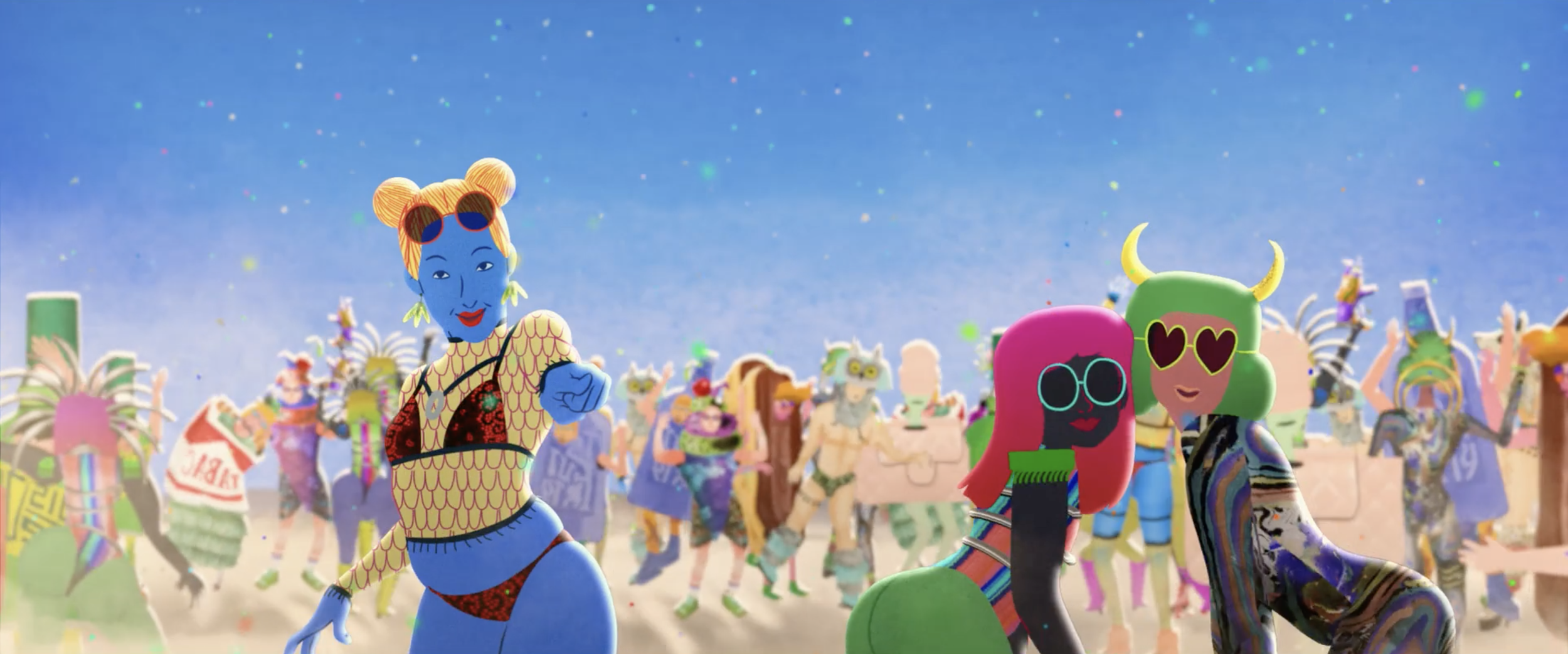 The Island | 2022 | Collaborating with film director Anca Damien and art director Gina Thorstensen, I contributed to the design of background elements and characters for Anca's film The Island. The background elements were then rendered in 3D, while the characters were brought to life in a fluid 2D style. This surreal comedy offers a fresh take on Robinson Crusoe, weaving current affairs into its visual poetry and symbolism. The Island is a vibrant, whimsical, and humorous musical fable.