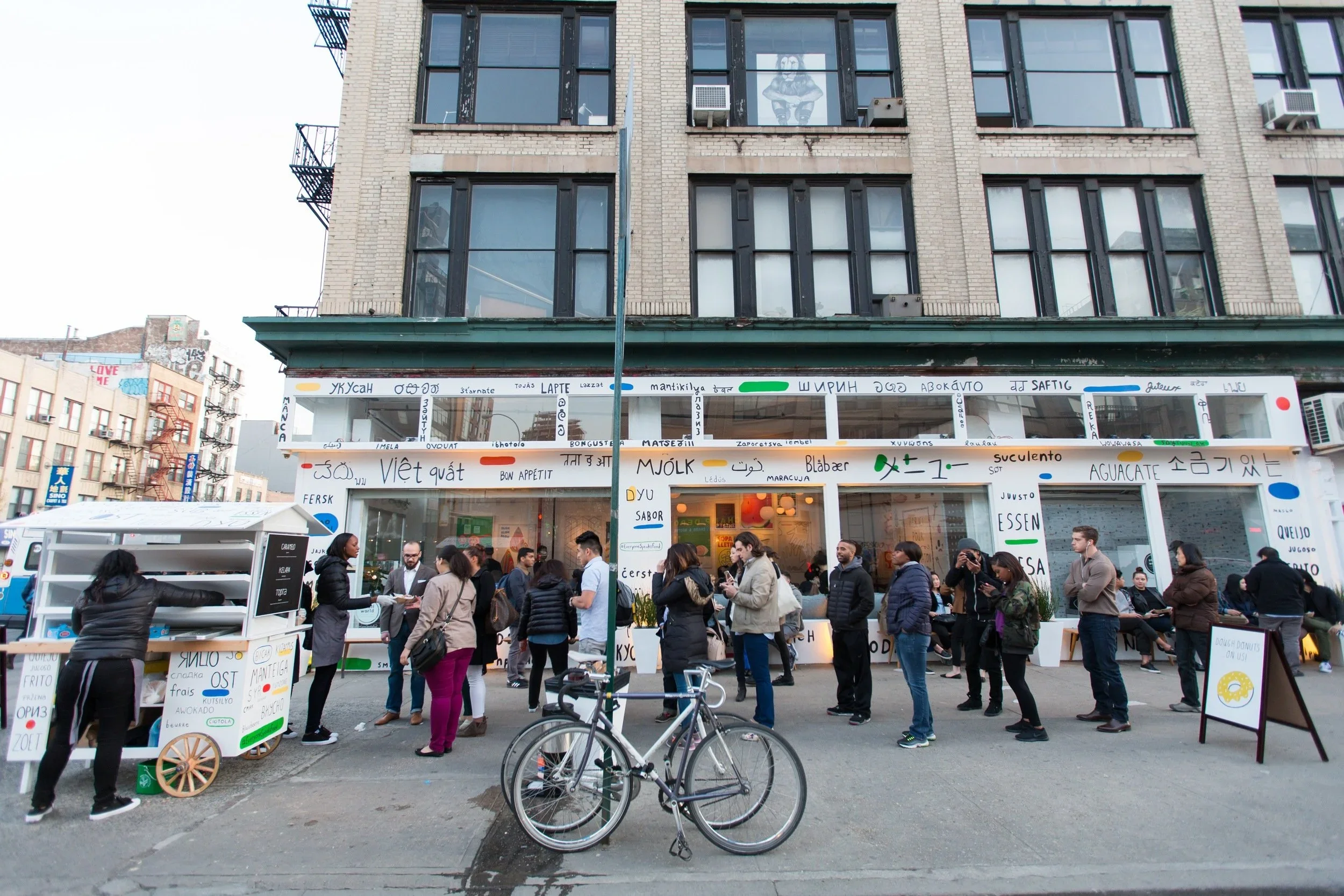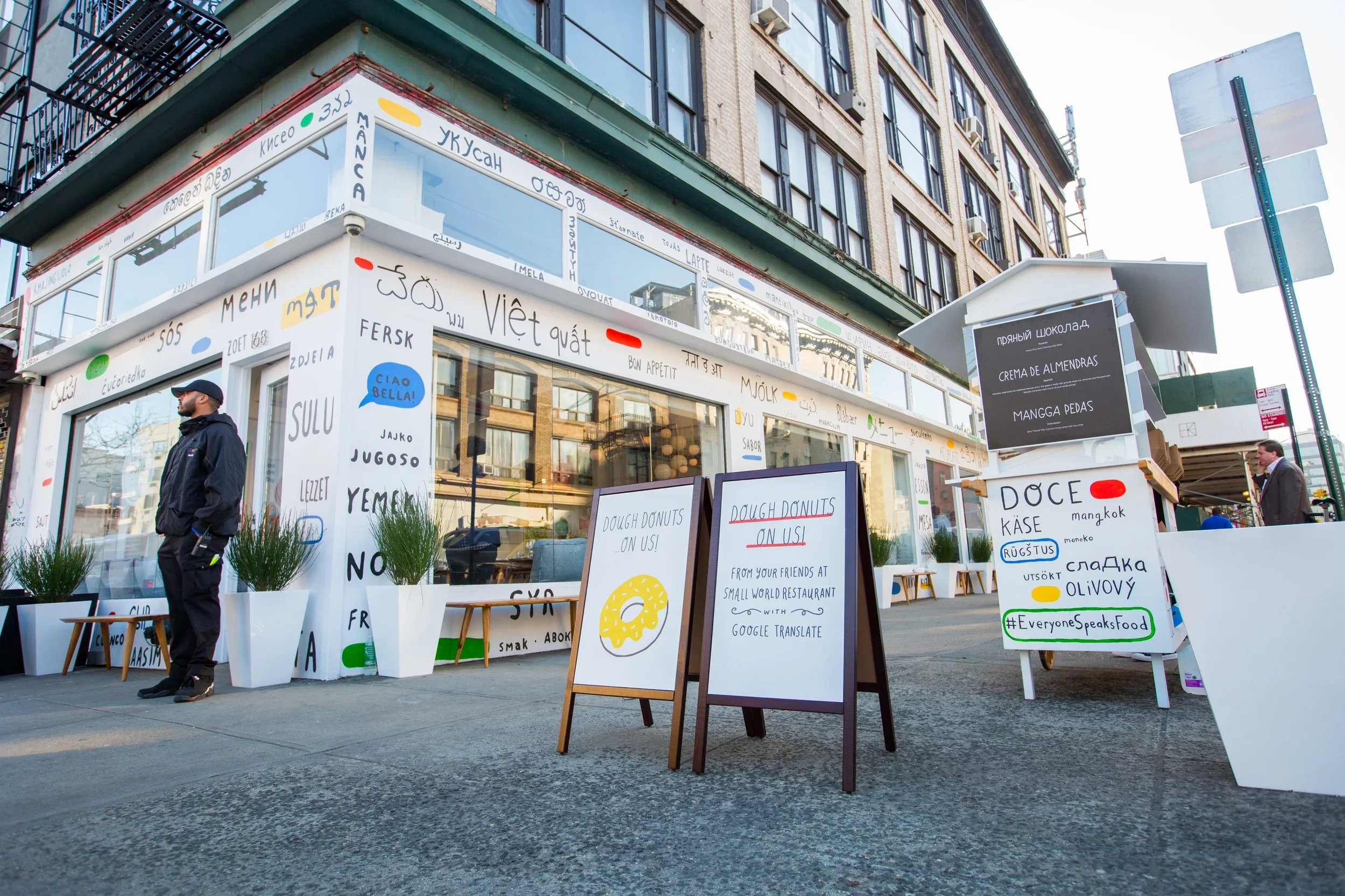 In celebration of Google Translate's 10th anniversary, m ss ng p eces and PARTY New York opened Small World, a free pop-up restaurant in NoLita, NYC for four days in April 2016. Every menu item was written in a foreign language, and the waitstaff spoke only in their native tongues. Guests had to use Google Translate to order. Reservations filled within an hour.
